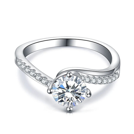 Luxury 925 Sterling Silver Round Cut 1CT Moissanite Diamond Ring Band With Certificate