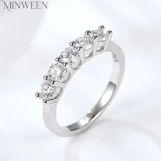 5 Stones Real D Color 4mm Full Moissanite Row Rings For Women 100% S925 Sterling Silver Band Fine Jewelry