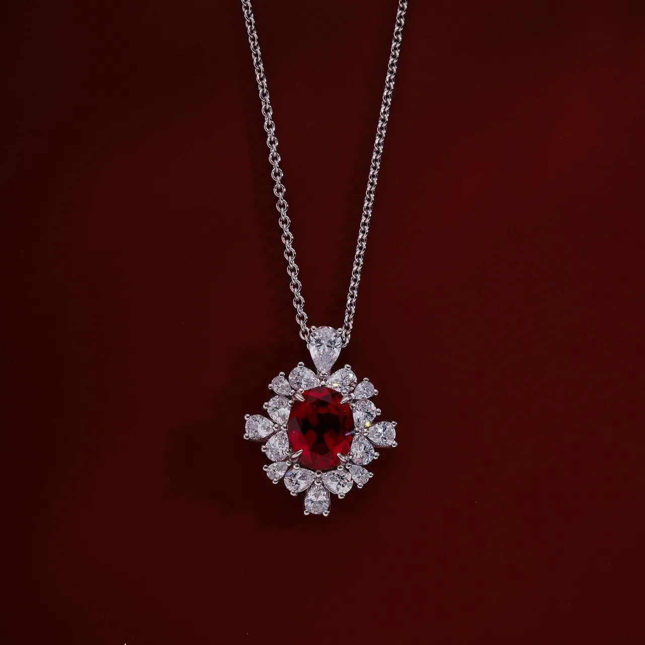 2.5ct 5A Lab Grown Ruby Necklace For Wowen Red Diamond 925 Silver Plated 18k Gold Necklace