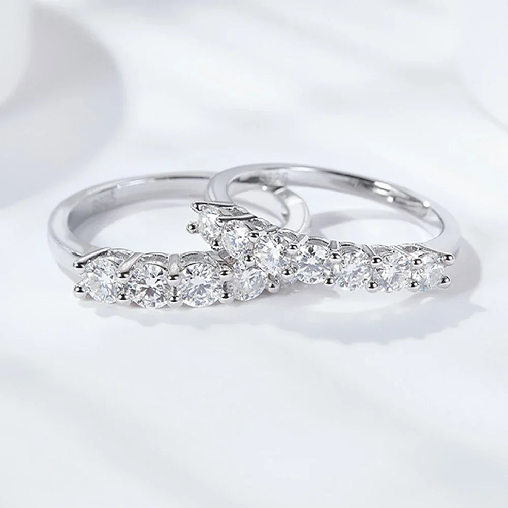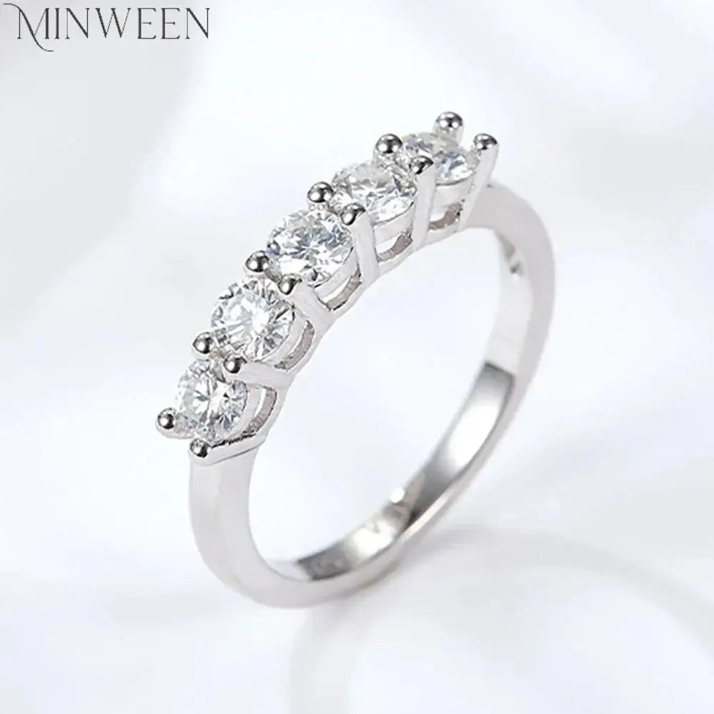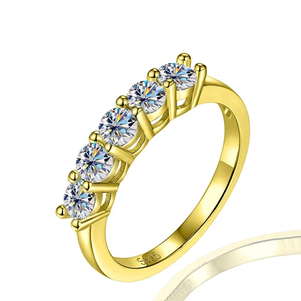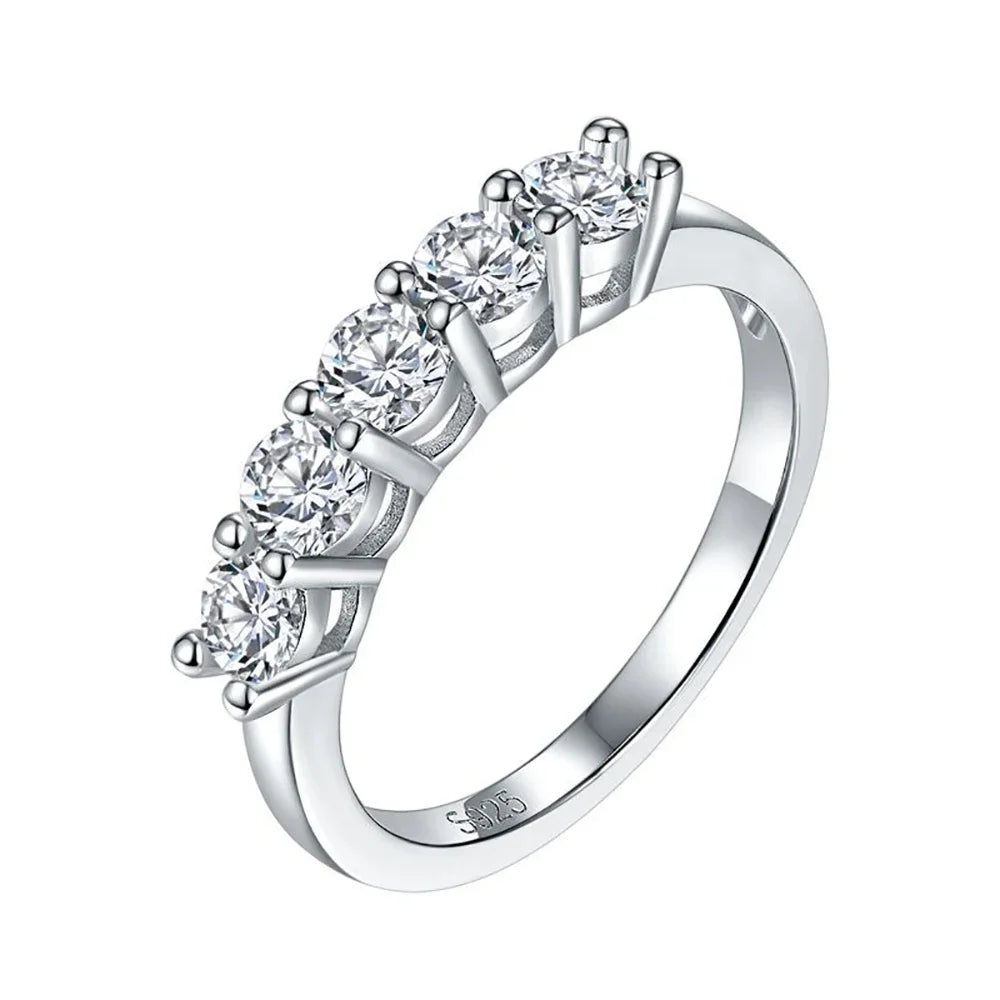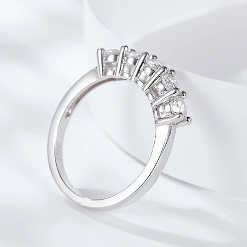 5 Stones Real D Color 4mm Full Moissanite Row Rings For Women 100% S925 Sterling Silver Band Fine Jewelry