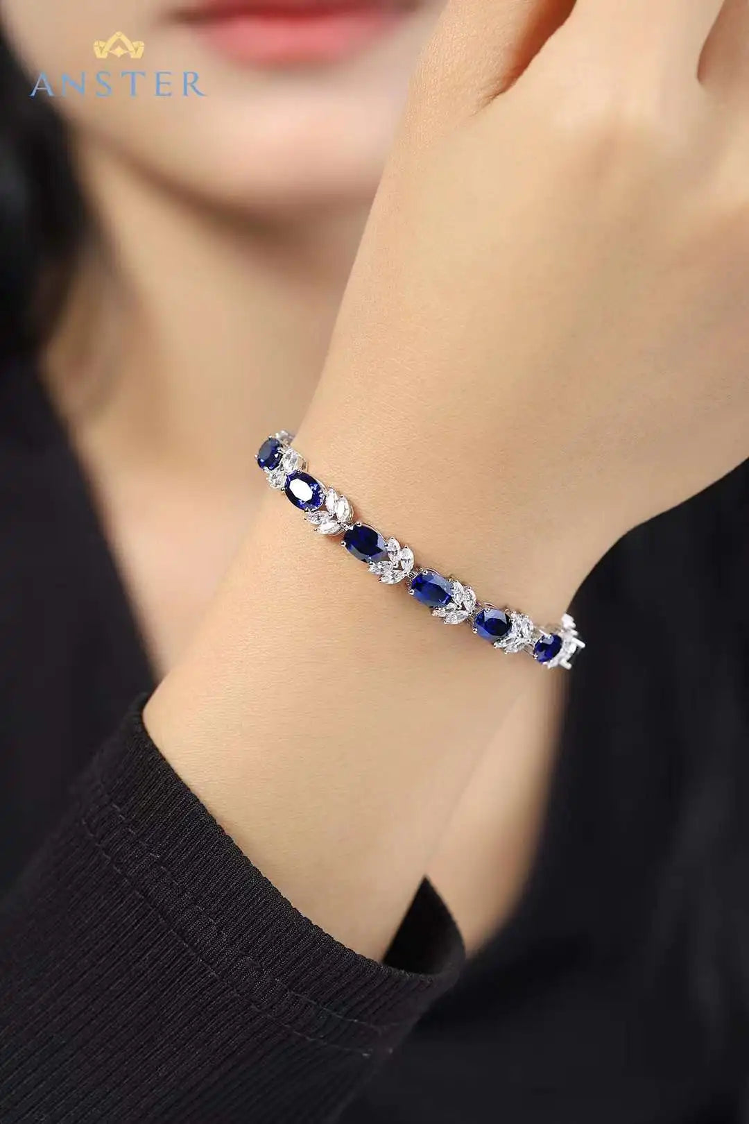 Customized Charming Bracelet Synthetic Gemstones 925 Sterling Silver Jewelry Sets for Women Bracelets Diamonds My Orders
