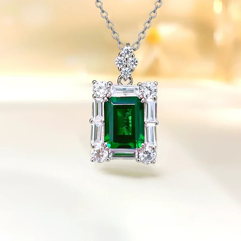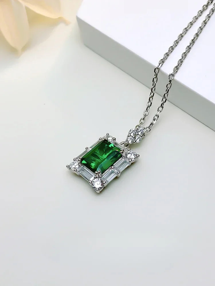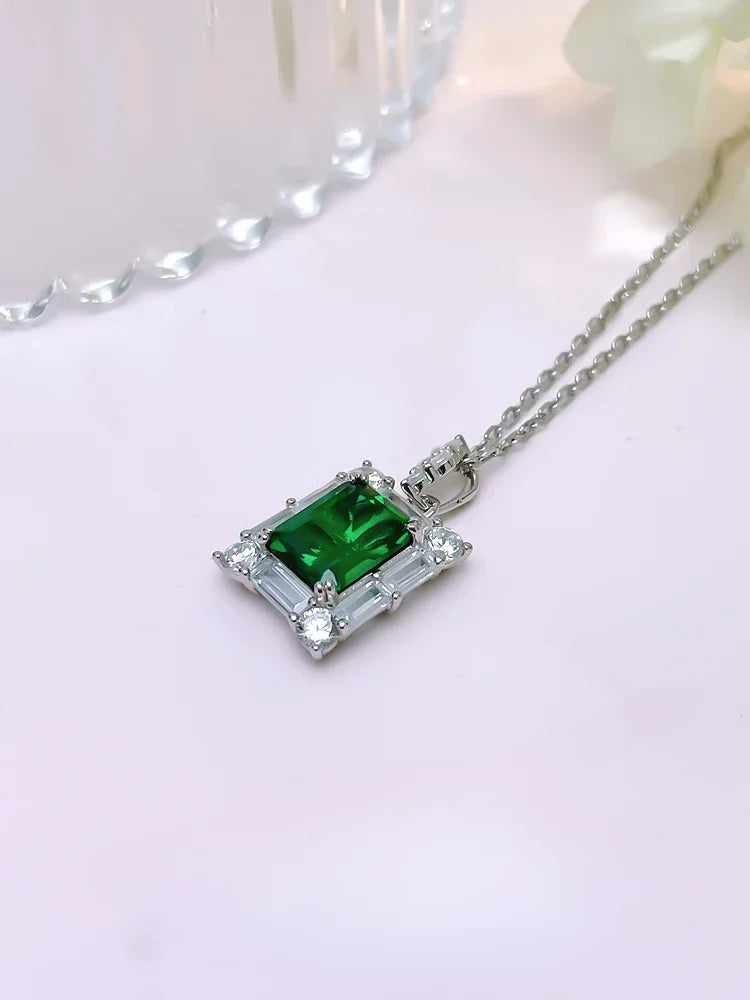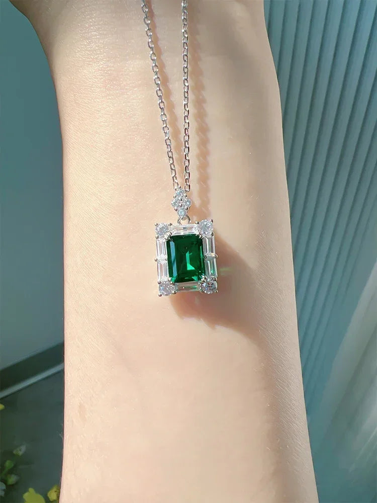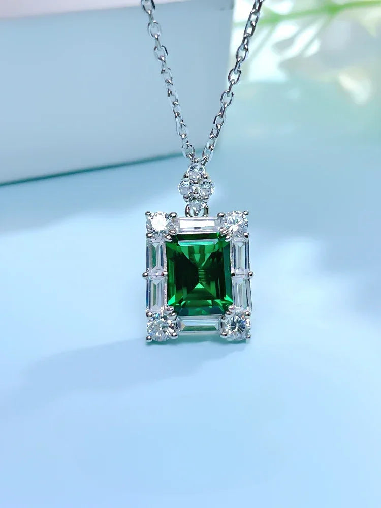 Desire Versatile Artificial Emerald 925 Sterling Silver Pendant Inlaid with High Carbon Diamond Collar Chain