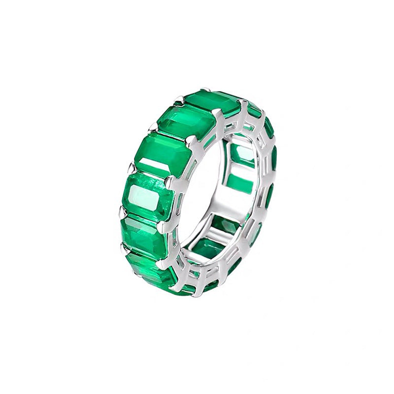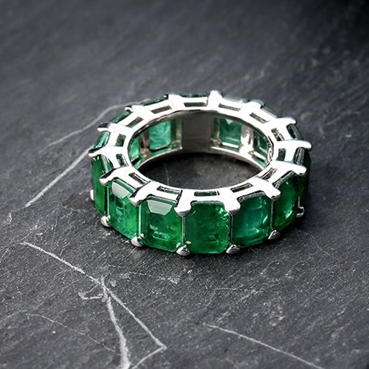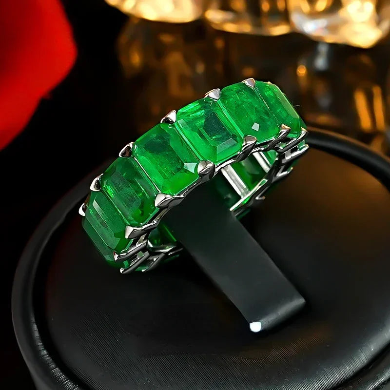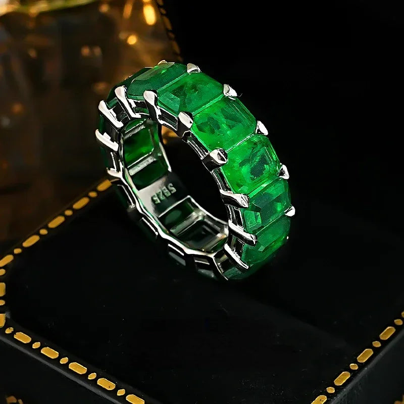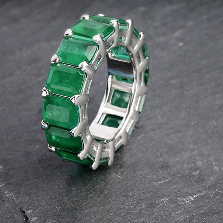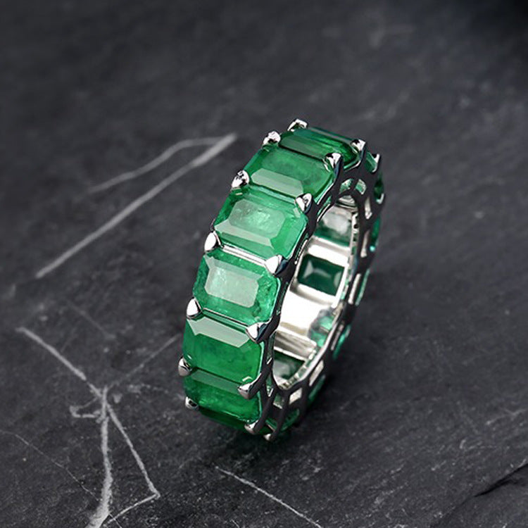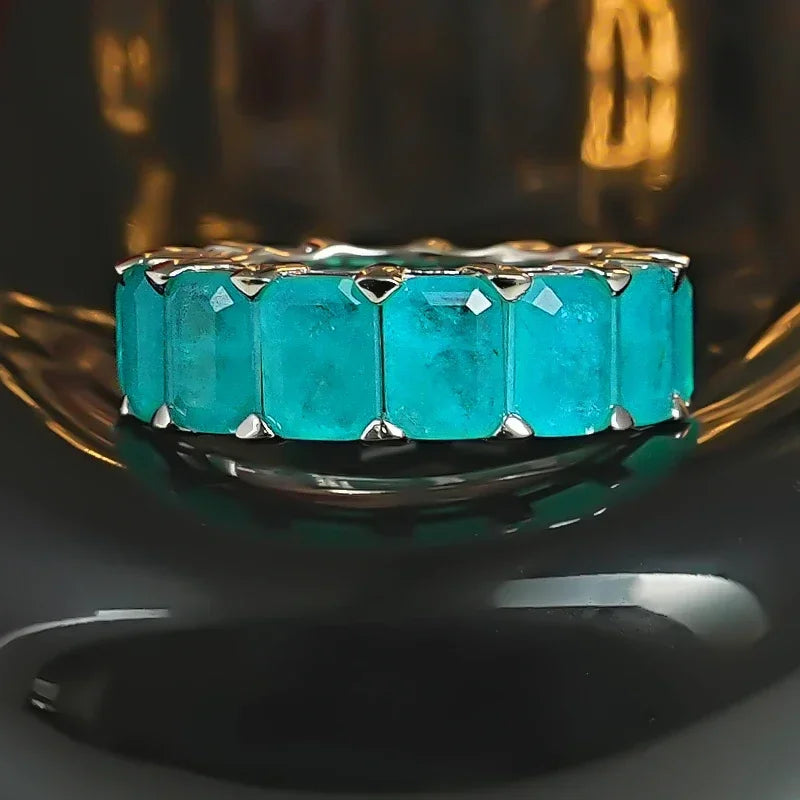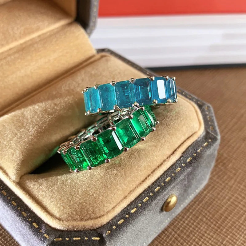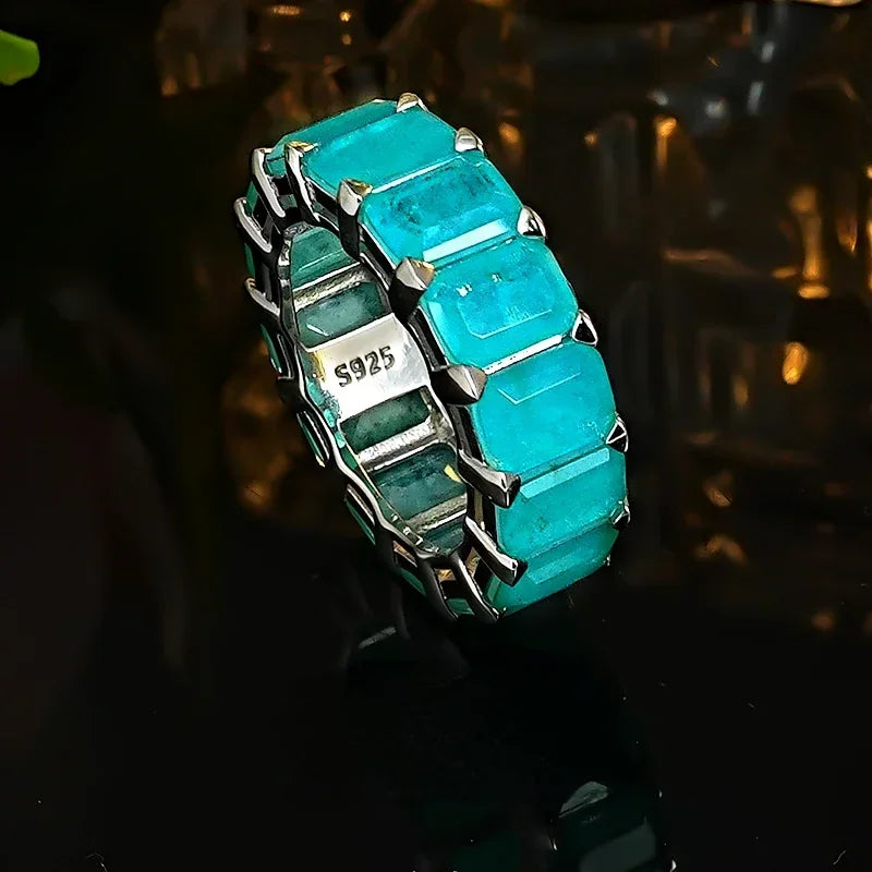 Elegant 925 Sterling Silver 5*7mm Rectangular Lab Emerald Paraiba Ring For Women Vintage Couple Jewelry Gifts