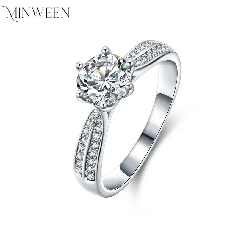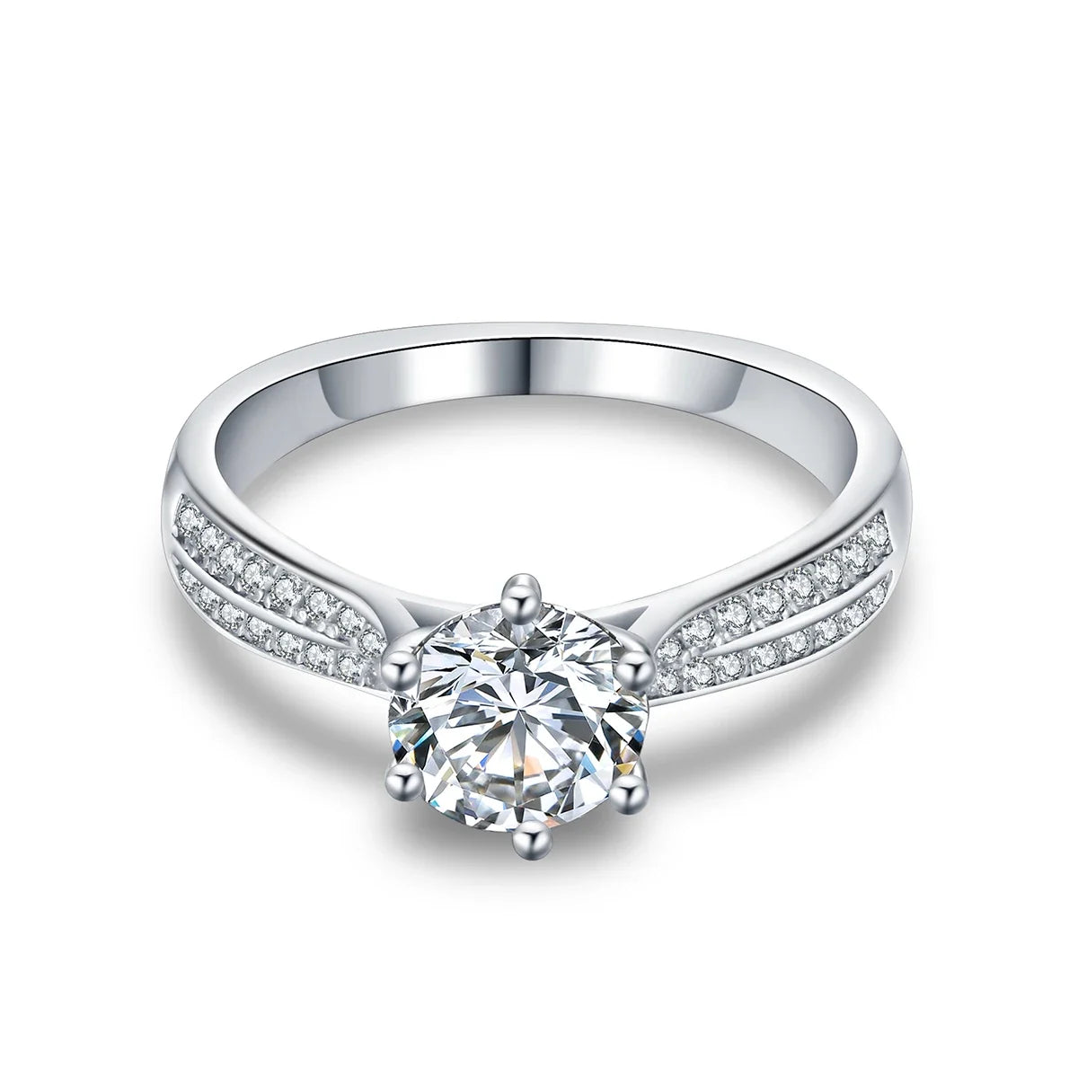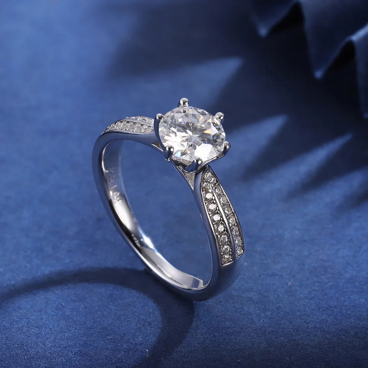 Luxury 925 Sterling Silver Round Cut 1CT Moissanite Diamond Ring Band With Certificate