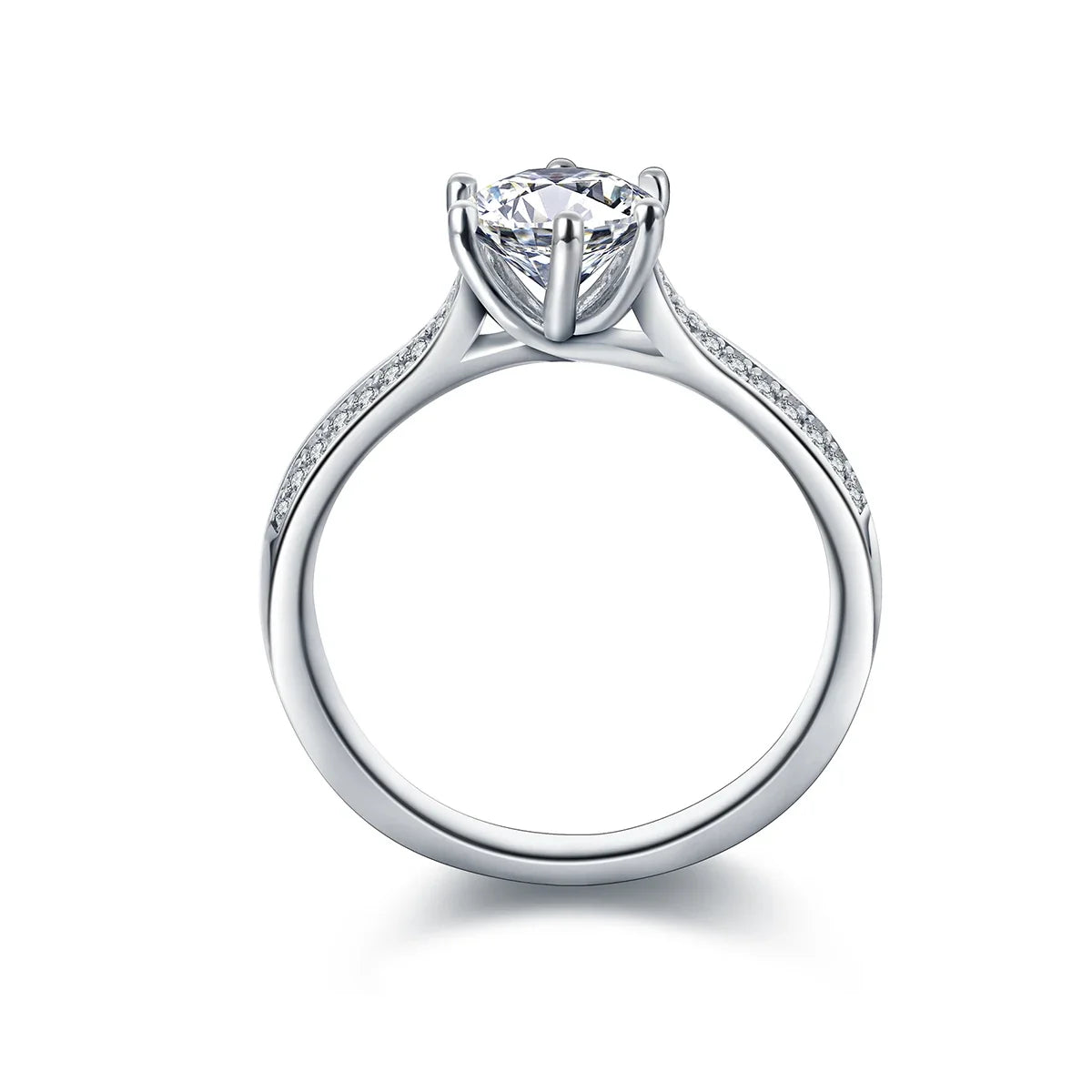 Luxury 925 Sterling Silver Round Cut 1CT Moissanite Diamond Ring