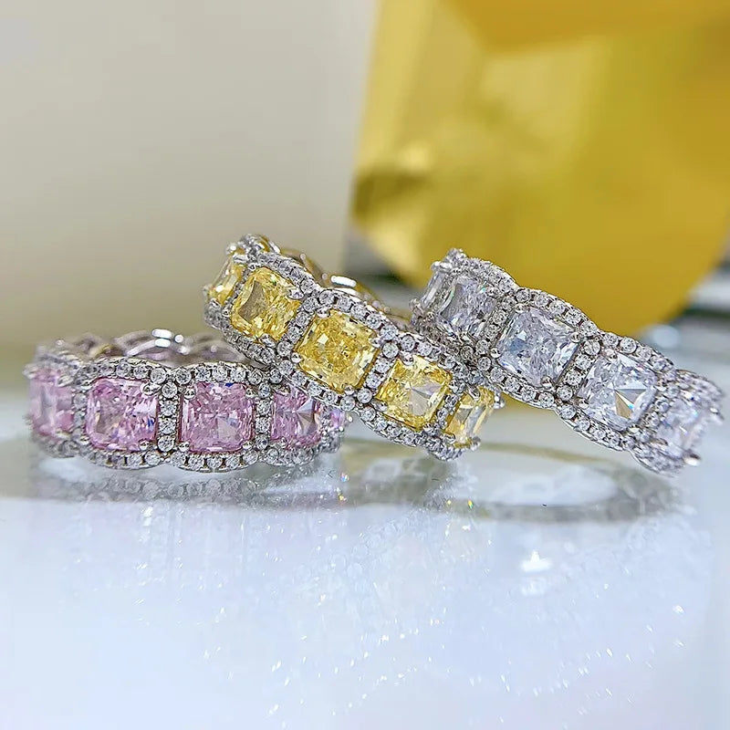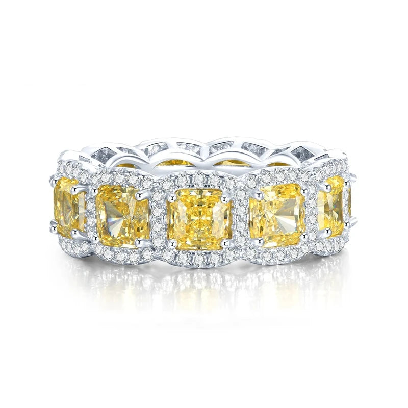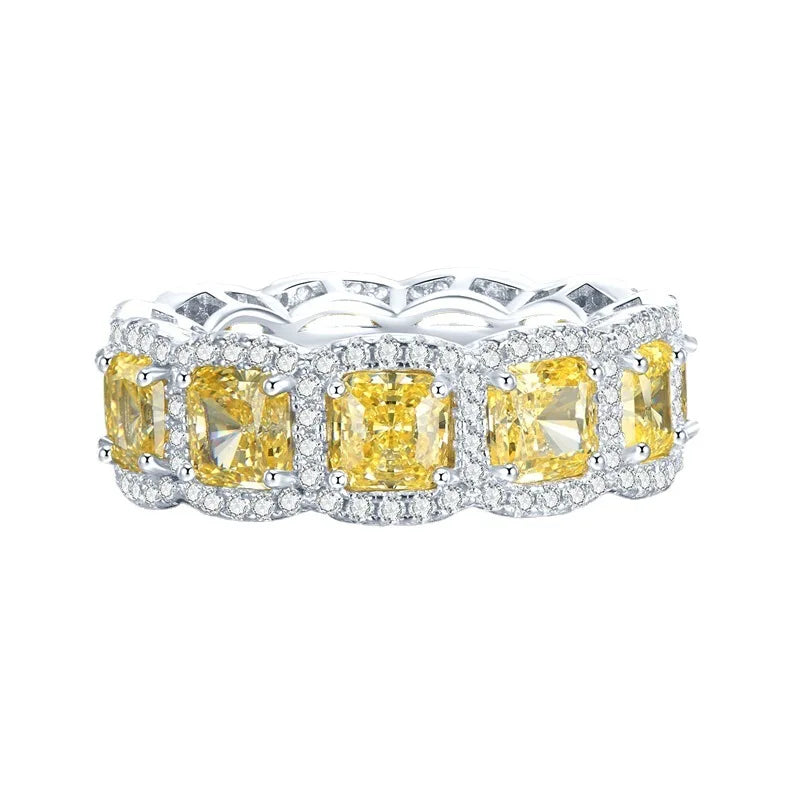 Luxury Halo High Carbon Diamond 5x5mm Radiant Cut S925 Sterling Silver Ring Yellow Diamond For Wedding Party