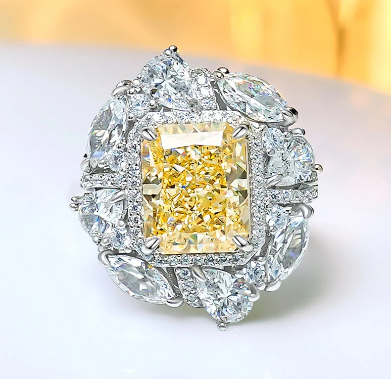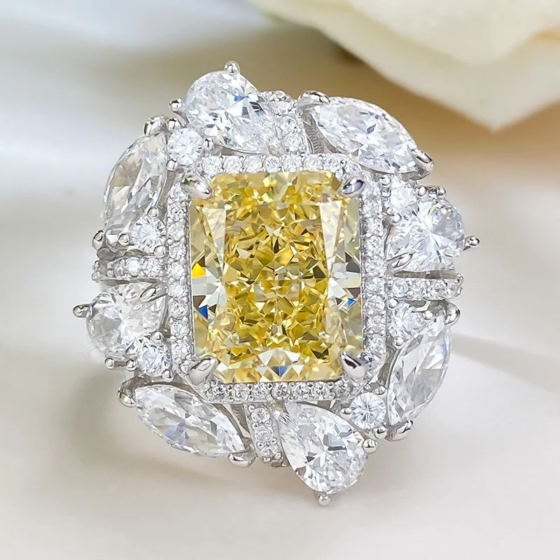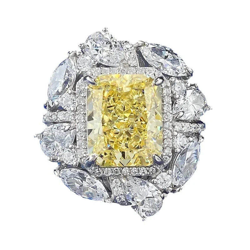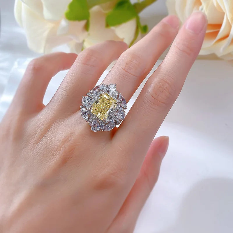 S925 Sterling Silver Rectangular 4 Carat Women's Ring Colorful Yellow 9 * 11mm Ice Cut Boutique Versatile Party Jewelry Ring